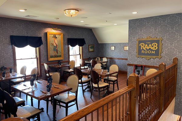 Five different dining rooms and a speakeasy provide an immersive experience for guests. Each one has its own distinct flair, from the historical atmosphere of the 1855 and Lincoln Rooms, to the more eccentric atmosphere of the Haunted Room and the Raab Room, named after the owners of the 1950s.